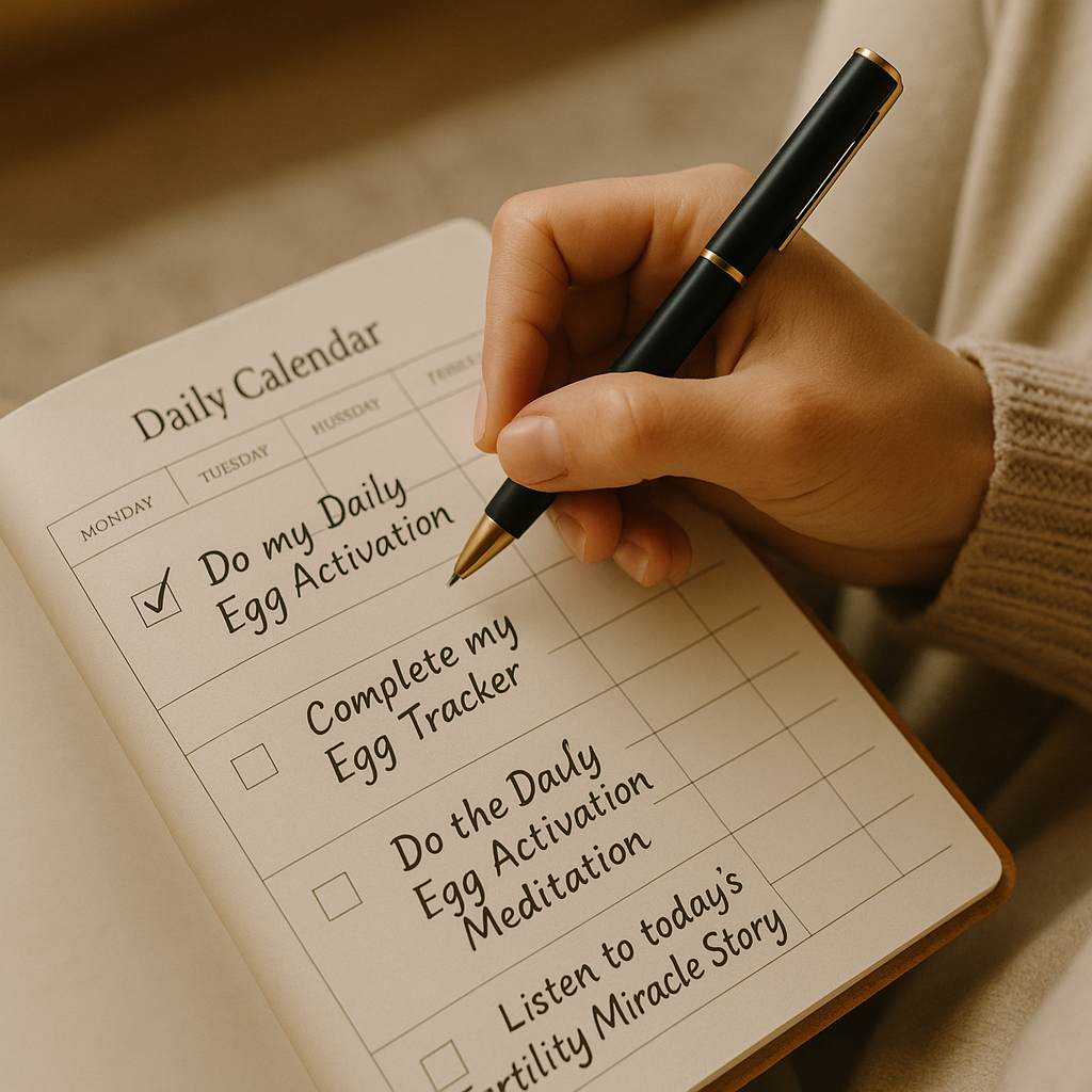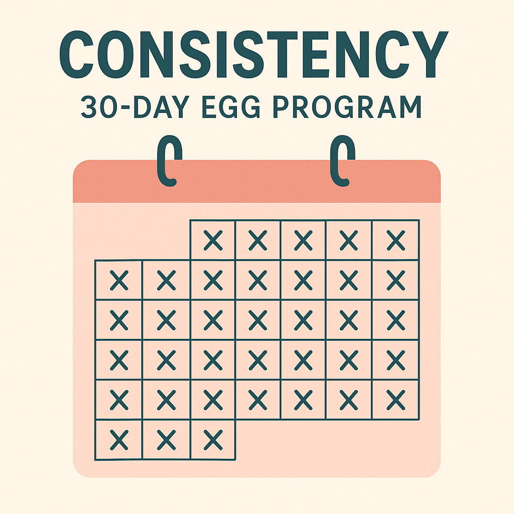 Your eggs mature over a 90–120 day cycle — and what you do each day directly impacts their health. Research confirms that daily, steady support for your mind and body leads to stronger, healthier eggs. Yet it’s human nature to fall off track after a few days. That's why the 30-Day Egg Support Program is designed to give you simple, consistent actions every day — because real change doesn't happen overnight, but it does happen when you show up one day at a time.